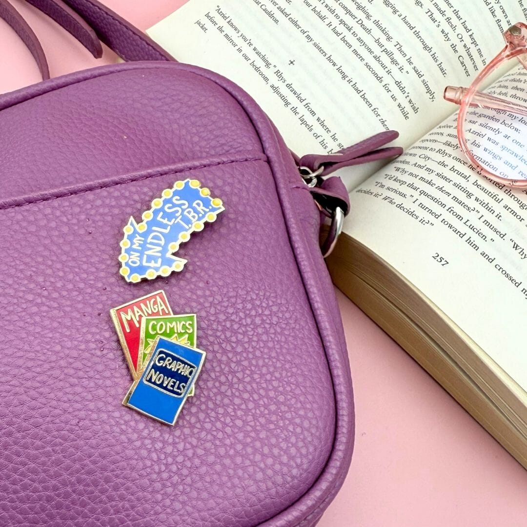 You’ve read enough that you’re ready to declare your allegiance. This pin is a bold spotlight for your one true genre, whether it’s fantasy, folklore, or spicy romance. Pop this pin...