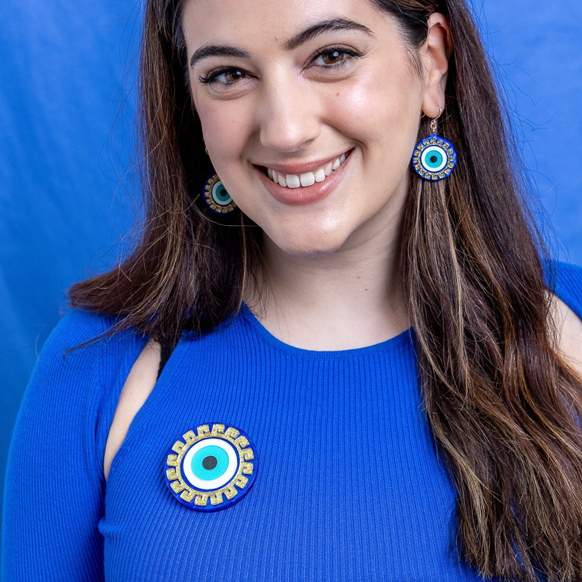An ancient symbol of protection, the Evil Eye Amulet brooch wards off bad luck in signature Erstwilder style. Hand-assembled from layered resin, it’s a small circle with big energy. Limited-run...